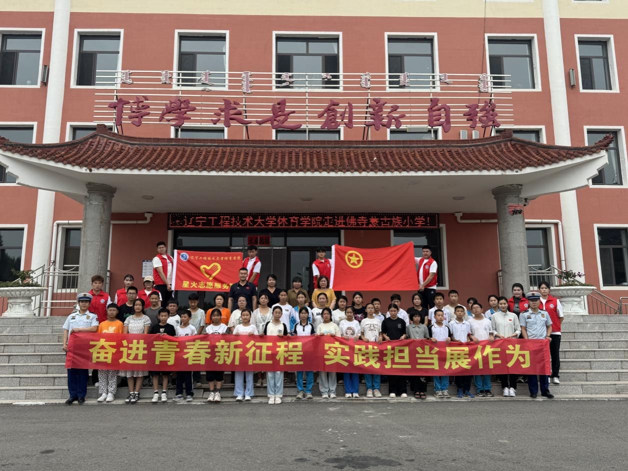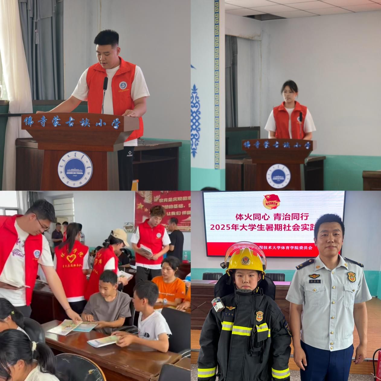 近日,辽宁工程技术大学体育学院大学生暑期社会实践团队走进阜新市佛寺蒙古族小学,开展了一场以“体火同心 青治同行”为主题的社会实践活动。此次社会实践活动得到了佛寺蒙古族小学师生们的高度认可和赞扬,不仅强化了小朋友们的消防安全意识,也有力带动了他们对提高身体素质的强烈渴求;不仅将专业优势转化为守护青少年成长的实践力量,也让消防安全教育从理论走向实践。