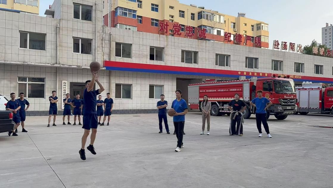 理论学习与实践体验过后,一场充满活力的篮球友谊赛把活动推向高潮。赛场上,体育学子与海州区消防救援大队的消防员们展开了激烈角逐。双方队员攻防有序,带球、突破、投篮……一个个精彩瞬间赢得场边阵阵喝彩。